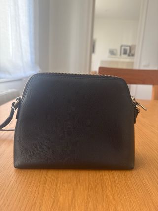 El bolso de la imagen es un Furla Athena Small Drawstring Bucket Bag, un modelo tipo bombonera confeccionado en piel de ternera graneada de color negro. Se caracteriza por su cierre de cordón ajustable, un asa superior plana y una correa de hombro desmontable que permite llevarlo como bandolera. Características Principales Material: Piel de ternera con acabado texturizado o graneado. Diseño: Estructura flexible con base circular típica de los bolsos tipo cubo ("bucket bags"). Detalles: Herrajes metálicos en tono dorado y el logotipo de Furla discretamente ubicado en la parte frontal o en los tiradores del cordón.