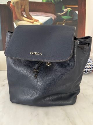 Mochila Furla de piel en color azul. marino - Cierre de cordón. - Detalle de solapa. - Logo metálico de la marca. - Con bolsillo interior