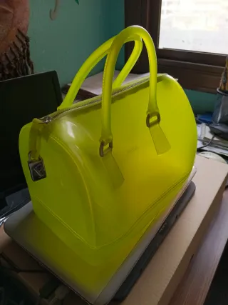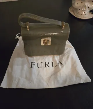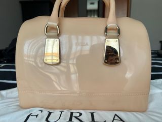 Bolso original Furla modelo Candy. Con su funda de tela original. Usado 1 día para un compromiso. - Material de goma. - Cierre de cremallera. - Asa de mano. - Incluye charm colgante.