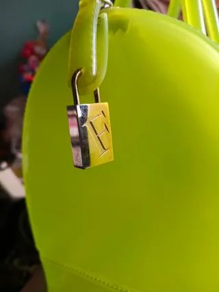 Bolso Furla de diseño italiano con un llamativo color verde translúcido. - Material: PVC. - Cierre de cremallera. - Dos asas superiores. - Incluye charm con logo.
