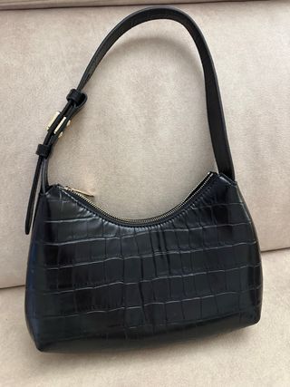 Bolso de piel con un diseño elegante y funcional. - Material: Piel texturizada. - Cierre principal con cremallera. - Bolsillo exterior. - Asas cómodas para llevar al hombro.