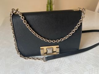 Elegante bolso Furla con detalles dorados. - Diseño clásico y versátil. - Cadena metálica para llevar al hombro o cruzado.
