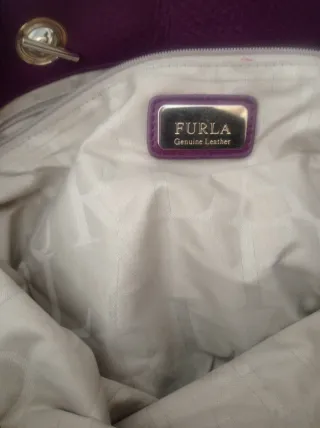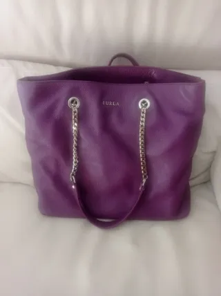 Bolso de mano Furla en suave piel de color morado intenso. Un accesorio elegante y espacioso. - Diseño tote. - Cadena metálica decorativa en los laterales. - Asa de mano superior.