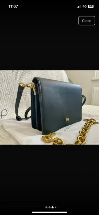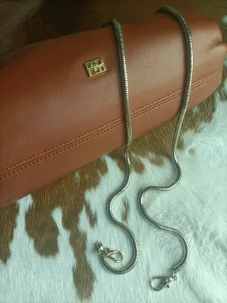 Bolso de piel auténtica, usado solo una vez. Diseño elegante y atemporal, tamaño ideal para llevar lo esencial. En excelente estado general. La cremallera del bolsillo interior funciona mal (no afecta al uso del bolso). Incluye bolsa guardapolvo (dust bag). Medidas: 21 × 11 × 9 cm