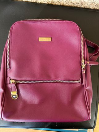 Mochila de la marca Gloria Ortiz en color morado. - Compartimento principal y trasero con cierre. - Detalle de placa metálica con el logo. - Interior con muchos apartados y bolsillos.