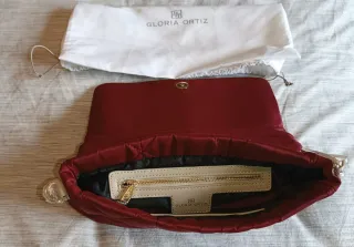 Bolso de mano y hombro de la marca Gloria Ortiz. - Diseño acolchado con rombos. - Asa corta y correa larga ajustable. - Cierre de cremallera. - Detalle metálico frontal. Buen estado. Algún defecto menos. Ver fotos