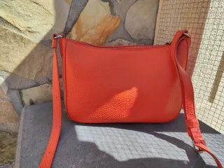 bolso Bandolera De piel , Gloria Ortiz , Marca del El Corte Ingles. Correa ajustable. Bolsillo exterior e interior. Gran capacidad. Color rojo coral. Tiene algún roce que se aprecia en la foto, pero es muy sutil. En muy buen estado. Medidas 20x30x8