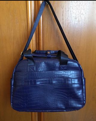 Bolso de viaje, con asas de mano y bandolera - Cuero sintético grabado serpiente - en tono azul (ver penúltima foto con luz natural) - medidas en la última foto - sin uso, proviene de muestrario - exterior impecable, bolsillo interior con una pequeño descolorido Más productos y referencias en mis otros perfiles: VirginiaLuxe P. Virginia P. VirginiaSales P. VirginiaBeauty P. VirginiaBags P.