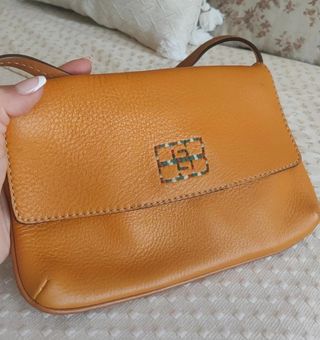 Bolso bandolera de piel color mostaza de El Corte Inglés ( Gloria Ortiz ) No presenta ningún desperfecto. 24x15
