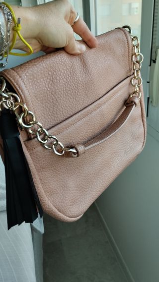 Bolso de hombro mediano con charm negro incluido en perfectas condiciones. Color salmón claro.