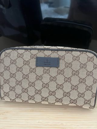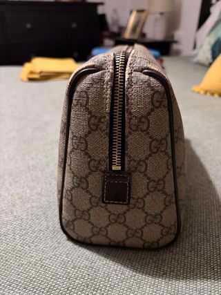 Neceser de la marca Gucci con el clásico estampado GG. - Diseño icónico. - Acabado en piel.