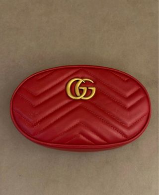 Riñonera de la línea GG Marmont de Gucci. - Diseño acolchado con el icónico logo GG. - Incluye cinturón a juego. - Viene con su bolsa guardapolvo y tarjetas.
