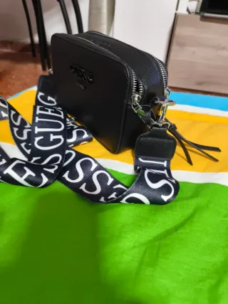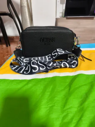 Vendo bolso de GUESS, poco usado y en muy buen estado. Diseño elegante en color negro con detalle del logo frontal. Tiene dos correas intercambiables y removibles: • una correa normal • una cadena dorada Se puede usar de diferentes formas según el estilo. Detalles: • Marca: GUESS • Color: negro • Dos correas removibles (cadena y correa) • Bolsillo exterior • Bolsillo interior con cremallera • Tamaño compacto Está en buen estado general y poco usada.