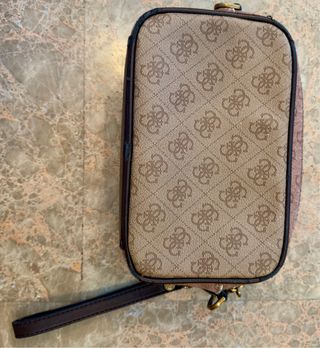 Bolso o neceser de la marca Guess con su característico estampado monograma. - Diseño con monograma. - Cierre de cremallera. - Incluye asa lateral.