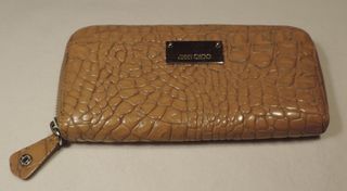 Elegante cartera con un diseño texturizado que imita la piel de cocodrilo. - Acabado en tono beige con detalles dorados. - Cierre completo de cremallera para mayor seguridad. - Incluye un tirador de cremallera con un detalle metálico.