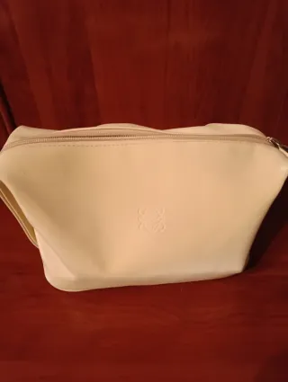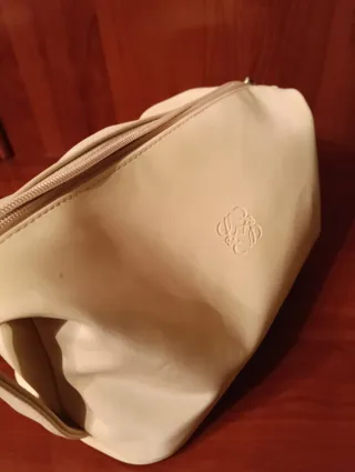 Neceser de la marca Loewe en color crema. - Diseño elegante y funcional. - Logo de la marca grabado en relieve.