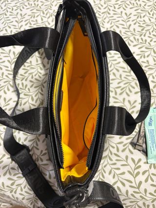 Bolso de la marca Lois con un diseño moderno y funcional. - Interior forrado en color amarillo vibrante. - Correa ajustable para llevar al hombro o cruzado. - Compartimento principal con cierre de cremallera.