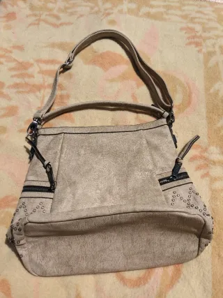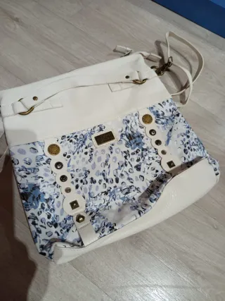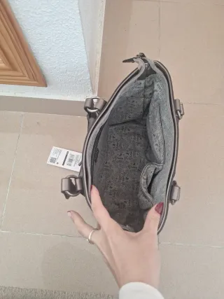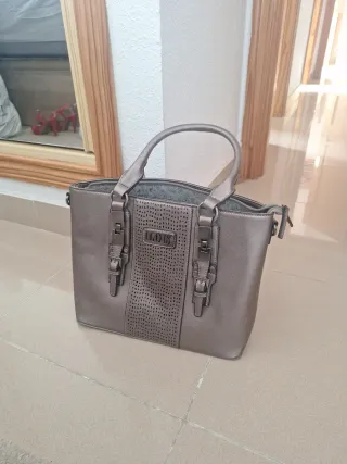 Bolso de mano y hombro con un diseño moderno y original. Tiene el asa un poco pelada del uso .