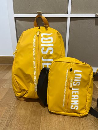Mochila Lois Jeans y bandolera amarilla