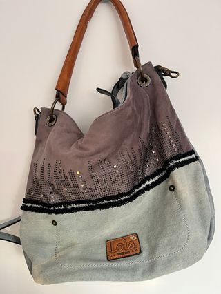 Bolso de la marca Lois con un diseño original. - Material de lona resistente. - Detalles en piel. - Correa ajustable. Efecto envejecido