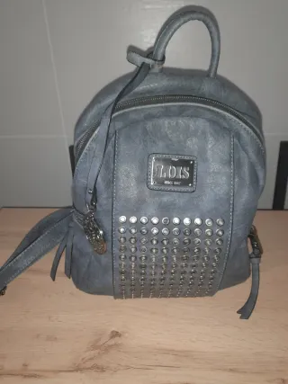 Bolso de la marca Lois en color azul. Presenta un diseño moderno y práctico. - Cierre principal con cremallera. - Bolsillos exteriores con cremallera. - Detalles de tachuelas decorativas. - usad 1 vez