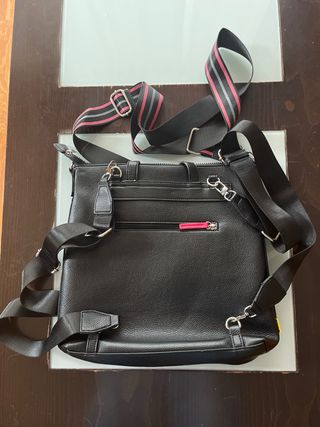 Vendo al bolso al mismo precio que me costo. Esta sin estrenar. Bolso de piel con un diseño moderno y elegante. - Material: Piel. - Combinación de colores: Negro y rosa. - Detalle de logo en relieve.