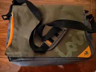 Bandolera de la marca Lois. Nueva sin estrenar. Se hacen envíos. - Color gris y verde. - Cierre con cremallera naranja.