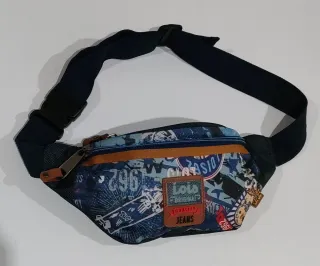 Riñonera mediana de la marca Lois con un diseño llamativo y moderno. - Estampado con motivos gráficos y texto. - Cierre de cremallera delantera, trasera y arriba. - Correa ajustable.