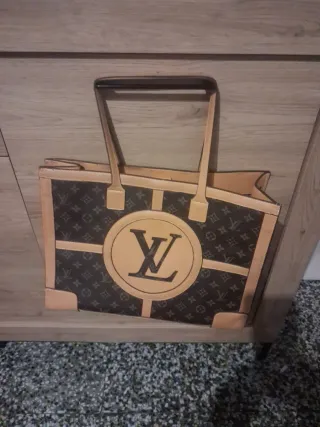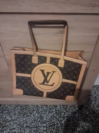 Elegante bolso de mano con el icónico estampado de Louis Vuitton. - Diseño clásico en tonos beige y marrón. - Detalles en piel. - Asa cómoda para llevar al hombro o en la mano.