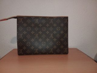 Neceser tipo pouch con diseño monograma inspirado en Louis Vuitton, en tonos marrón y beige. Un accesorio práctico y elegante, ideal para llevar objetos personales, documentos, accesorios o usar como neceser de viaje. Su formato rectangular es cómodo y versátil, perfecto tanto para uso diario como para llevar dentro de una mochila o maleta. El diseño clásico del monograma le da un toque atemporal que combina con todo.