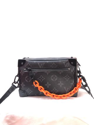 Bolso Louis Vuitton x Virgil Abloh. - Diseño con monograma. - Cadena de eslabones naranja. - Detalles metálicos negros.