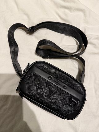 Bandolera Louis Vuitton en color negro. - Diseño con monograma en relieve. - Correa ajustable. - Cierre de cremallera. - Detalle de anilla metálica.