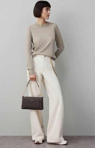 Bolso de mano Michael Kors. Lo vendo por qué fue un regalo y tengo uno muy parecido. - Diseño en color vainilla y marrón. - Asa de polipiel. - Incluye etiqueta.
