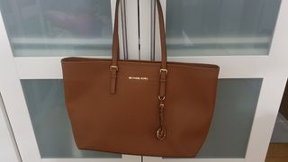 Bolso Michael Kors modelo Jet Set Travel en piel safiano.Color luggage, como nuevo usado en 2 ocasiones. Tal cual como se ve en las fotos. Se vende con la funda. Purificación García. Carolina Herrera. Tous. Piel.