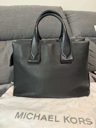 ✨ Bolso Michael Kors original en excelente estado Bolso tote Michael Kors en color negro, elegante y muy versátil. Está muy bien cuidado, con poco uso, tanto exterior como interior. Diseño estructurado con detalle de tachuelas, ideal para uso diario, trabajo o eventos. Muy cómodo y con buena capacidad. Detalles: ✔️ Marca: Michael Kors ✔️ Color: Negro ✔️ Estado: Excelente ✔️ Interior limpio ✔️ Asas firmes y estructura perfecta ✔️ Original 📍 Entrega en mano 📦 Envío por Wallapop disponible 💬 Respondo rápido