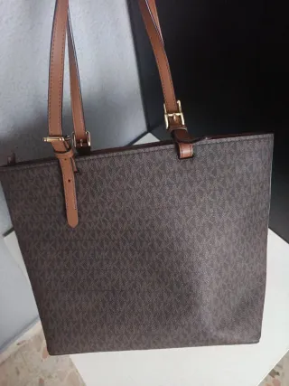 Bolso de mano Michael Kors con un diseño elegante. - Estampado MK característico. - Detalles en piel marrón. - Adorno metálico dorado con logo. Es original, subo foto de las etiquetas y el QR para su comprobación. Lo vendo por falta de uso, usado una o dos veces. Esta como nuevo, ningún desperfecto.
