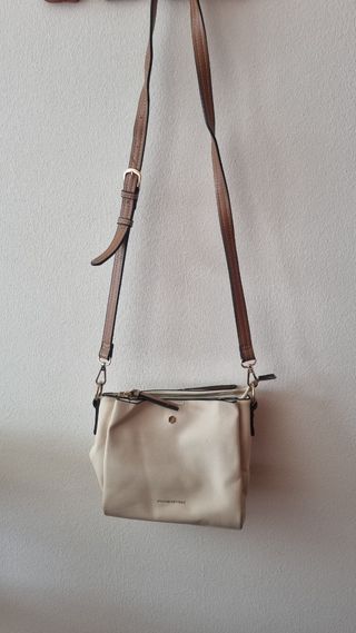 Bolso estilo bandolera de Parfois. Color crema con correa en marrón, cierre de cremallera. Buen estado pero con alguna marca (fotos). La correa está en perfecto estado.