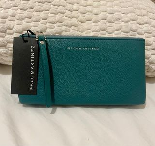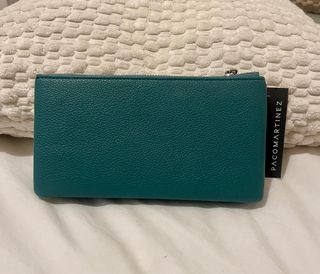 Elegante cartera de la marca Paco Martinez. - Color verde azulado. - Diseño moderno y funcional. - Gran tamaño. - Material suave, nada rigido.