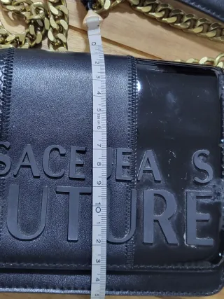 Bolso de mano Versace Jeans Couture con cadena dorada. Le falta la N, de ahí el precio. - Diseño con texturas variadas. - Logo de la marca en relieve.
