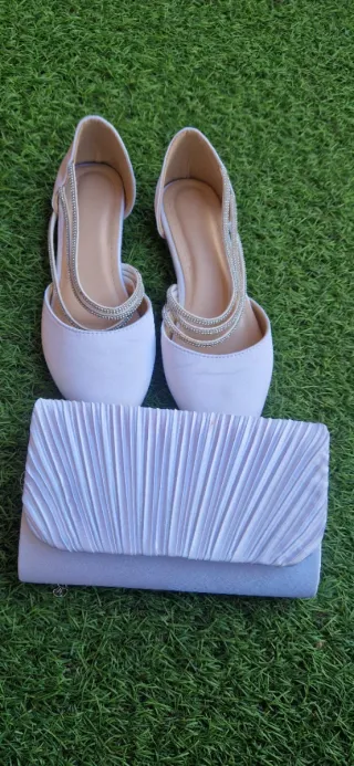 Zapatos y bolso raso blanco