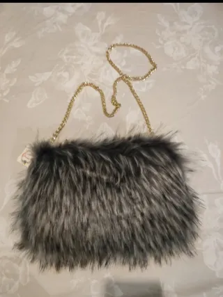 Elegante bolso de pelo con un diseño moderno y llamativo. Perfecto para añadir un toque de estilo a cualquier atuendo. - Acabado suave y esponjoso. - Cadena metálica dorada para llevar al hombro o cruzado.