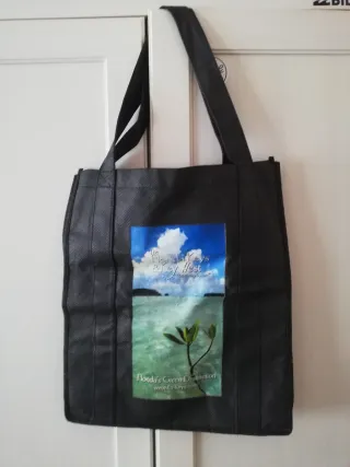 Original y bonita bolsa en color negro para hacer la compra que se puede llevar en el bolso. Con diseño fresco y original con temática sobre Florida Keys and Key West, marca Bag Makers, nueva no utilizada. Medidas altura 37cm.ancho 32cm. fondo 25cm. oportunidad, unica, original