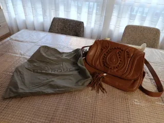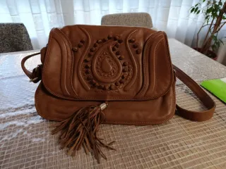 Bolso de piel marrón con flecos