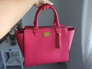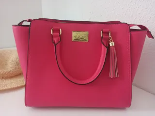 Elegante bolso de mano o para llevar al hombro. Prácticamente sin uso - Diseño moderno. - Asa cómoda. - Detalle de borla. - Placa dorada con logo.