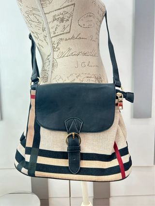 Bolso de hombro con un diseño clásico y elegante. - Estampado a cuadros característico. - Solapa con cierre de hebilla. - Correa ajustable para llevar al hombro. - Muy poco uso , casi nuevo , excepto en la última foto se aprecia una pequeña mancha , pero no es visible ya que está debajo de la solapa negra