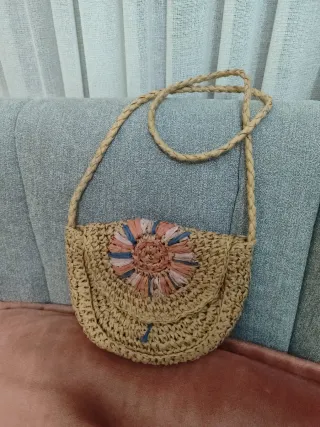Bolso infantil con forro interior y un bonito diseño floral. - Material de rafia. - Cierre de solapa. - Correa tejida.
