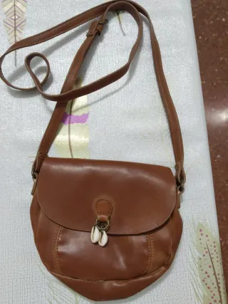 Bolso pequeño de piel sintética en color marrón. - Cierre con solapa. - Adorno de conchas. - Correa ajustable.