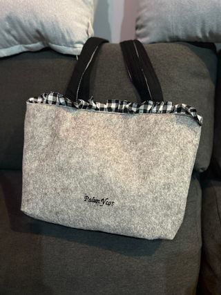 Bolso de fieltro gris con un bonito detalle de cuadros en el interior. - Material: fieltro. - Forro interior de cuadros. - Asas negras.