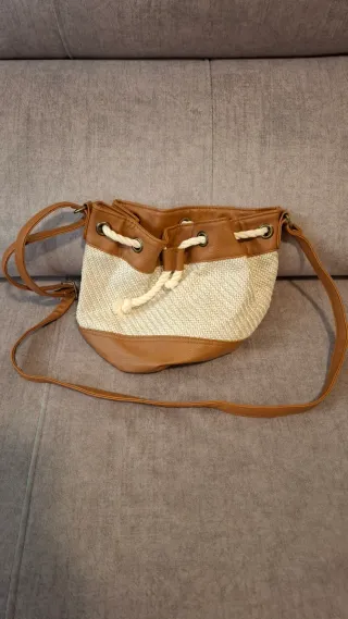 Bolso de hombro de Primark con un diseño moderno y práctico. - Combinación de materiales texturizados y polipiel. - Cierre de cordón. - Correa ajustable para llevar al hombro.