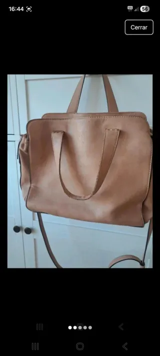 Bolso de piel con un diseño elegante y práctico. - Material: Piel auténtica. - Color: Marrón. - Asas de mano. - Correa ajustable para llevar al hombro.